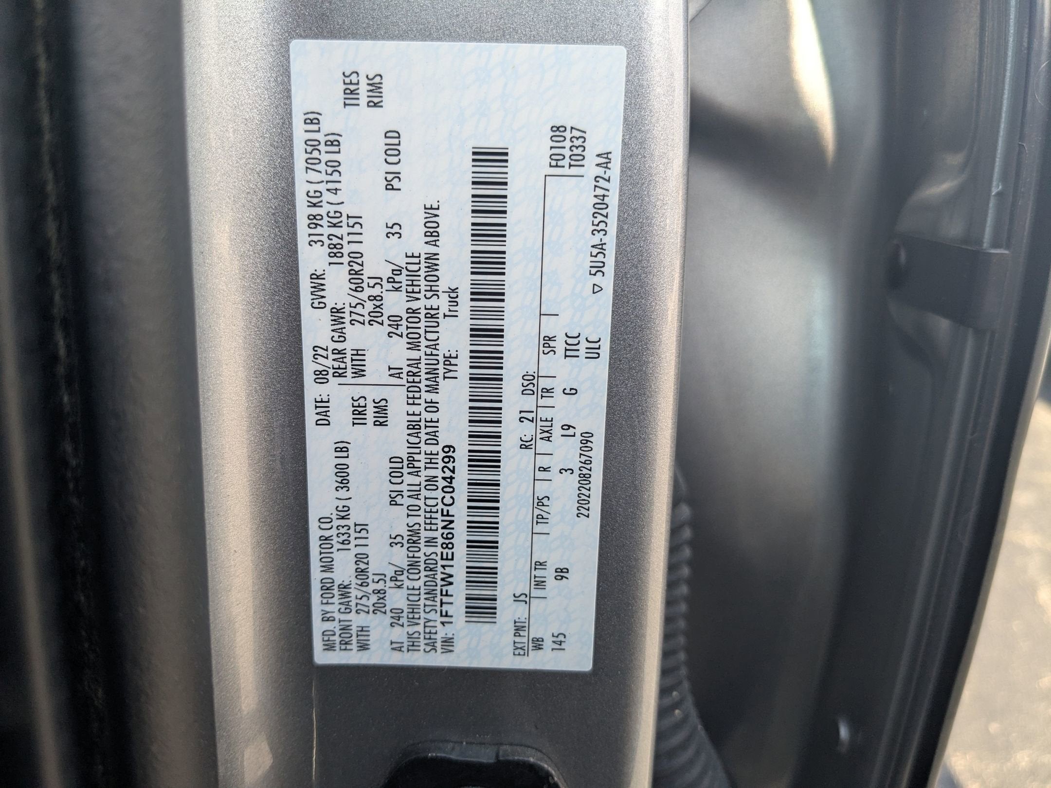 1FTFW1E86NFC04299